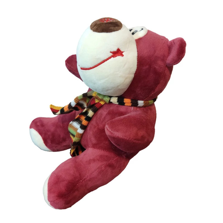 عروسک مدل خرس توت فرنگی شال گردن کد DB23 ارتفاع 25 سانتیمتر