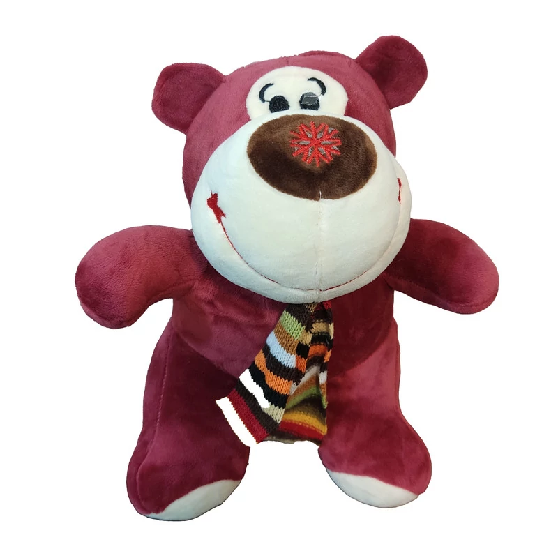 عروسک مدل خرس توت فرنگی شال گردن کد DB23 ارتفاع 25 سانتیمتر