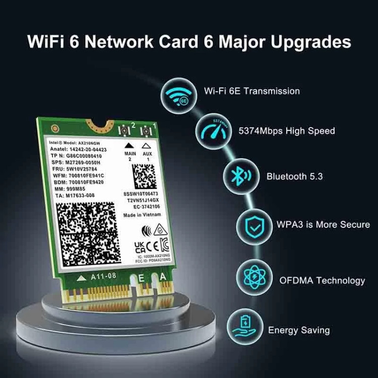 خرید اینترنتی کارت بیسیم Intel AX210NGW Wi-Fi 6 M.2، به همراه مقایسه، بررسی مشخصات و لیست قیمت امروز در فروشگاه اینترنتی دیجیفای
