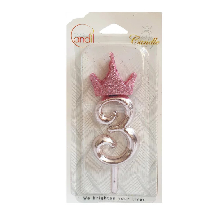شمع تولد مدل تاج کوئین اکلیلی عدد 3