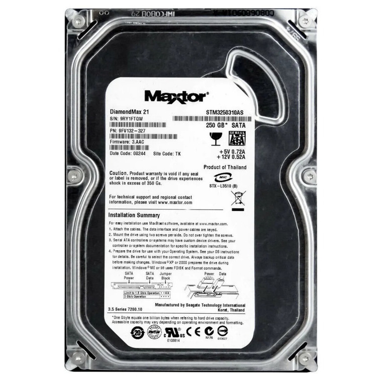 هارد اینترنال مکستور مدل MAXTOR STM3250310AS ظرفیت 250 گیگابایت